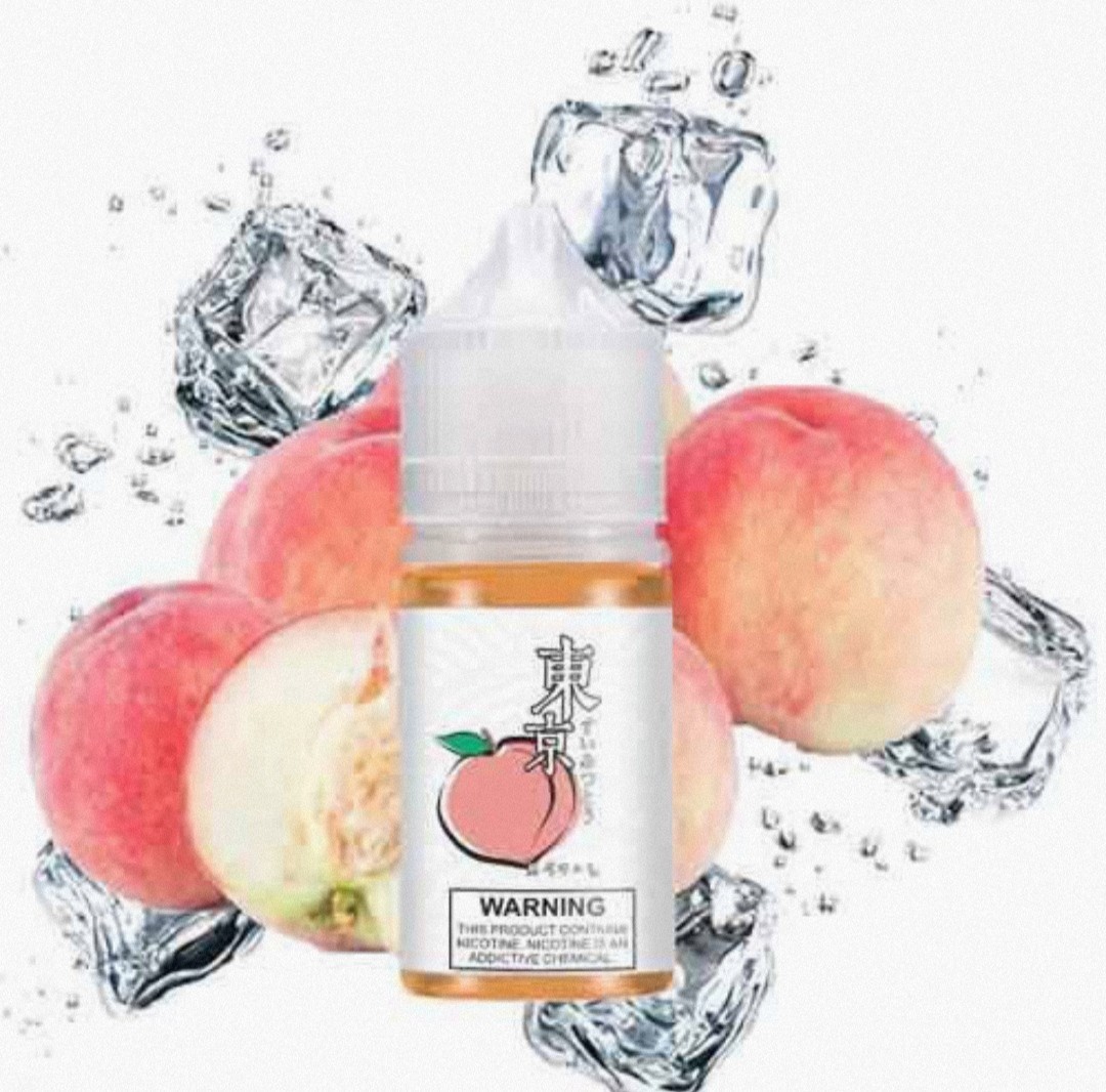 Tokyo saltnic peach ice refresh honey peach explode with all-natural flavor. Sweet and refreshing, with high-quality ingredients and a delightful taste.